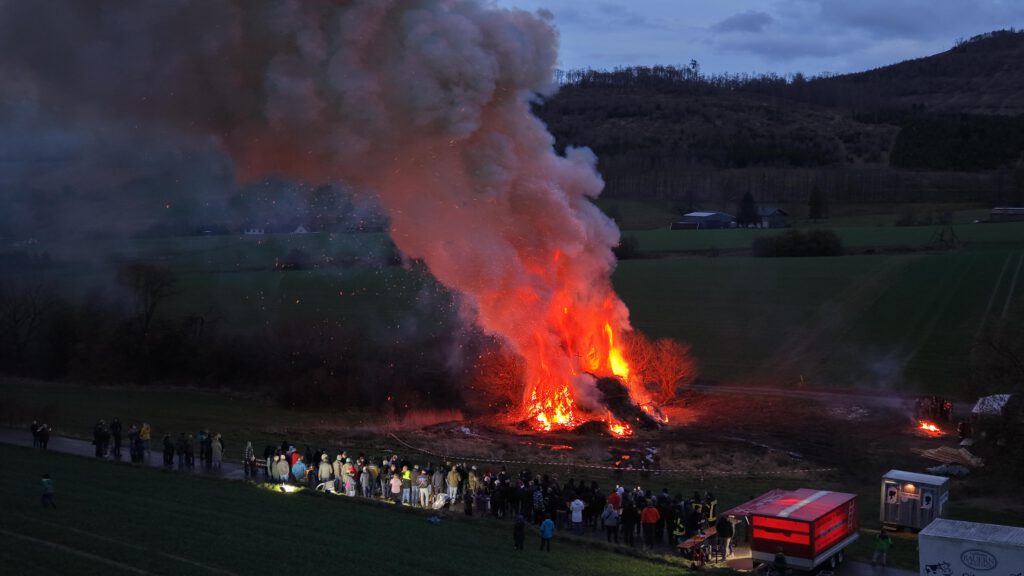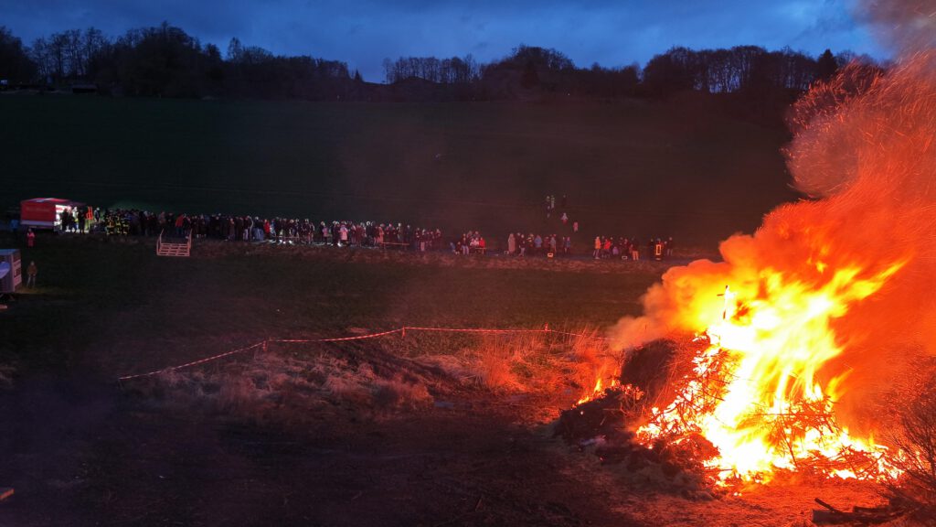 Am diesjährigen Ostersonntag wurde, wie in den letzten Jahren, wieder ein Osterfeuer in Messinghausen abgebrannt. Hierzu hatten die Dorfjugend und Jungschützen bereits im Januar die Weihnachtsbäume eingesammelt. Zudem wurden in der Woche vor Ostern zusätzlicher Baum- und Strauchschnitt abgeholt oder auch angeliefert und zu einem großen Osterfeuer aufgeschichtet. Um diese Arbeiten zu erleichtern, hatten einige Messinghauser Maschinen und Material zur Verfügung gestellt. Nach der Segnung des Feuers durch Pastor Manfred Müller, wurde es durch die Erbauer entzündet. Trotz des leicht regnerischen Wetters hatte sich eine beträchtliche Anzahl Zuschauern eingefunden. Großer Dank gilt den Jugendlichen und jungen Erwachsenen die mit viel Engagement und vielen Arbeitsstunden eine tolle Veranstaltung organisiert haben.